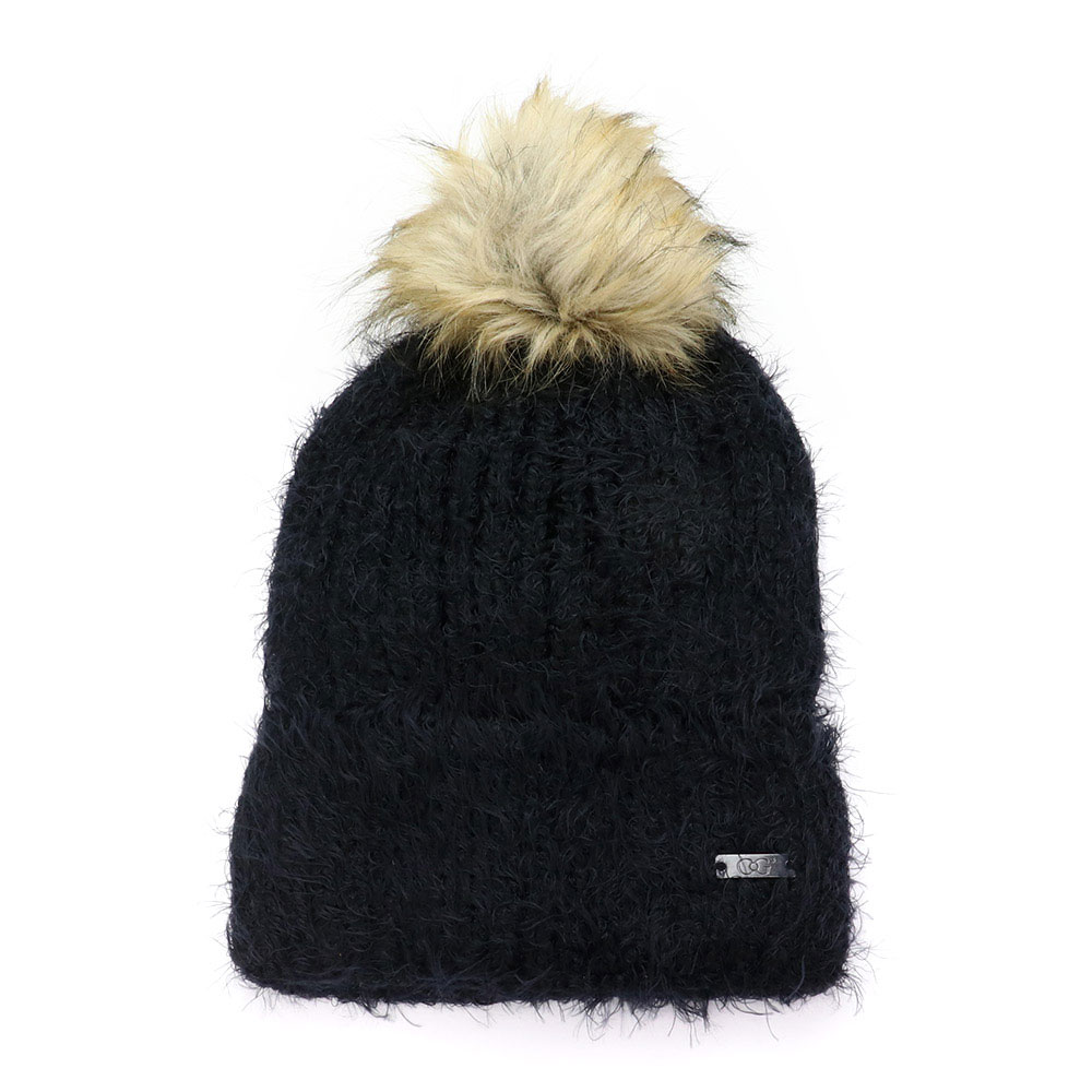 Faux Fur Pom Pom Cuffed Single Layered Beanie Hat
