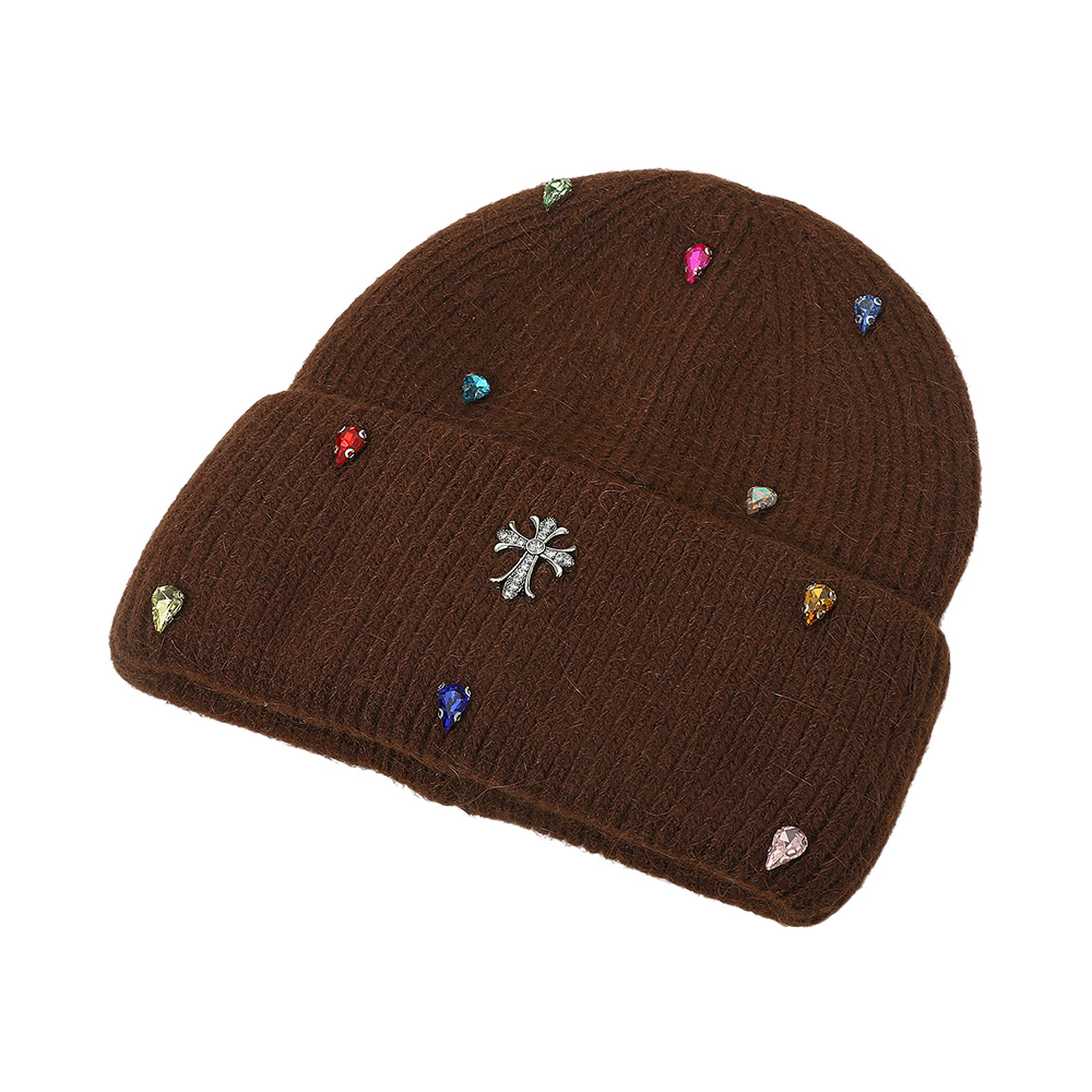 Rhinestone Cross Accent Teardrop Stone Cluster Embellished Knit Beanie Hat