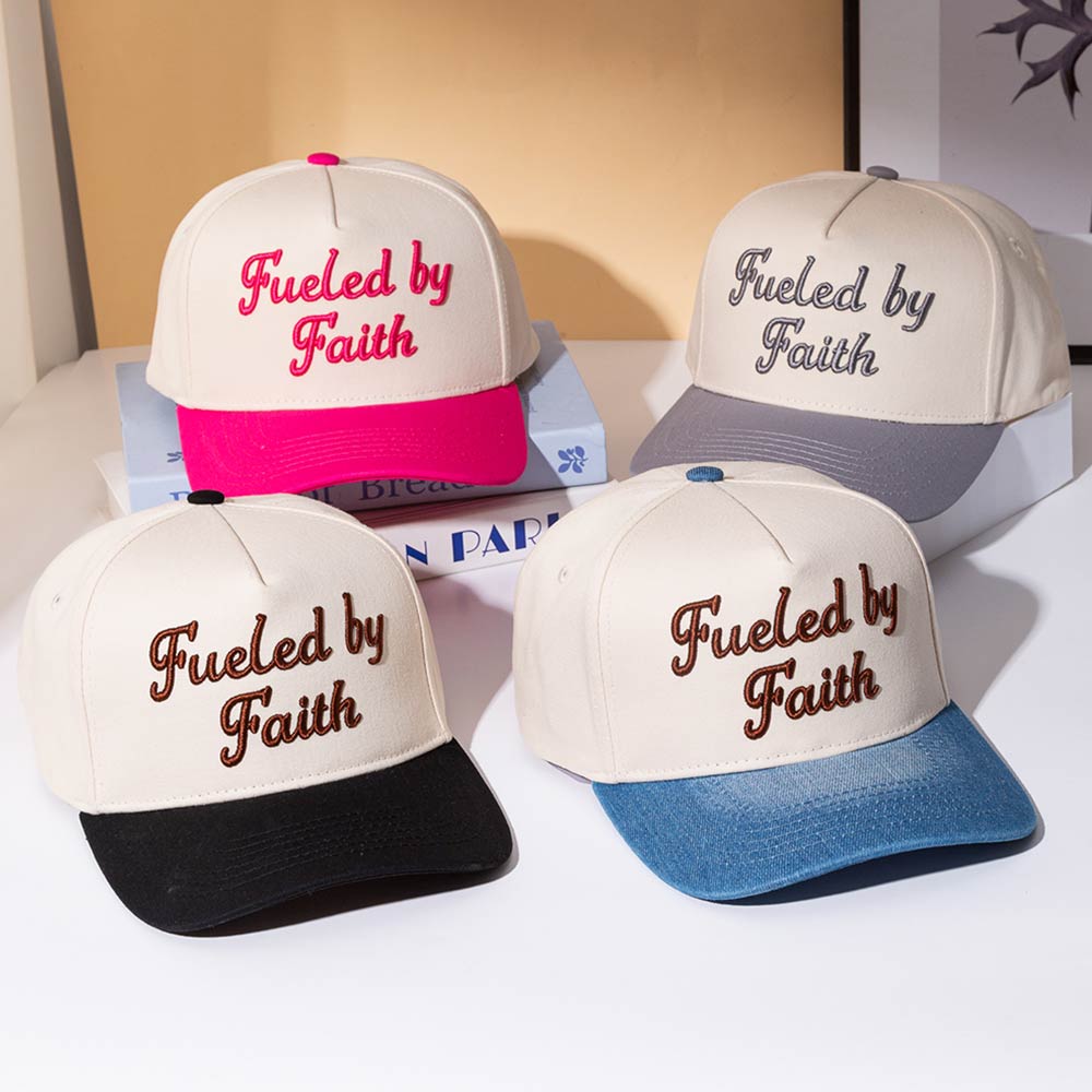 Details • Size : One Size • Motivational baseball cap featuring “Fueled by Faith” embroidered message for meaningful everyday wear. Designed for a comfortable fit and effortless styling with casual outfits. Perfect for daily errands, faith-based gatherings, travel, or gifting with an uplifting and confident statement.