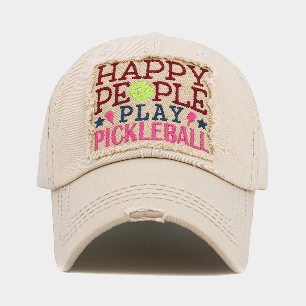 HAPPY PEOPLE PLAY PICKLEBALL Message Vintage Baseball Cap