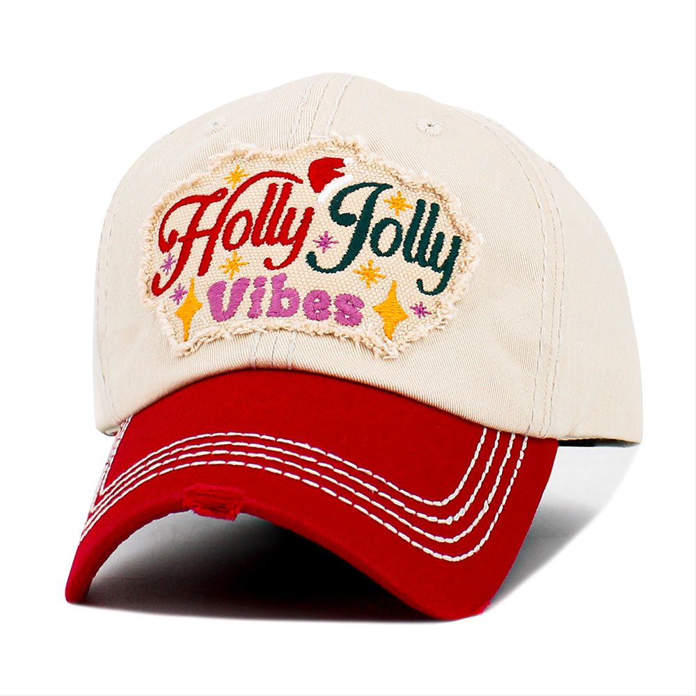 HOLLY JOLLY Vibes Message Embroidered Christmas Vintage Baseball Cap