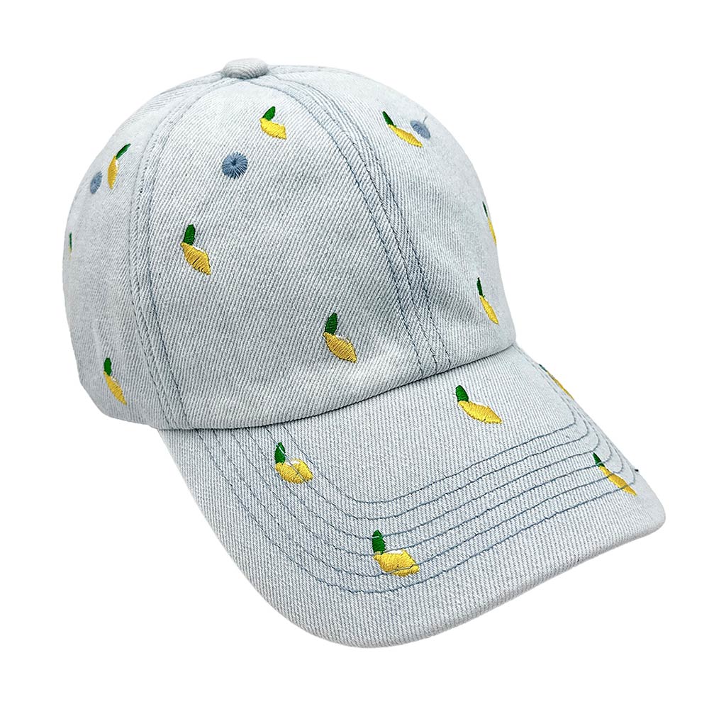 Details • Size : One Size (58cm) • Material : 100% Cotton • This lemon embroidered baseball cap features a playful allover fruit stitch that adds a fresh, cheerful touch to casual outfits. Easy to style and perfect for warm-weather assortments, it’s ideal for boutiques, summer displays, gifting, and customers looking for a fun statement accessory with everyday appeal.