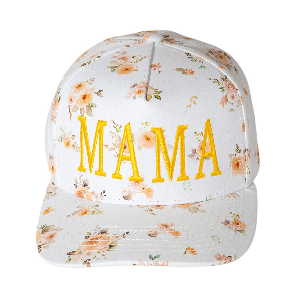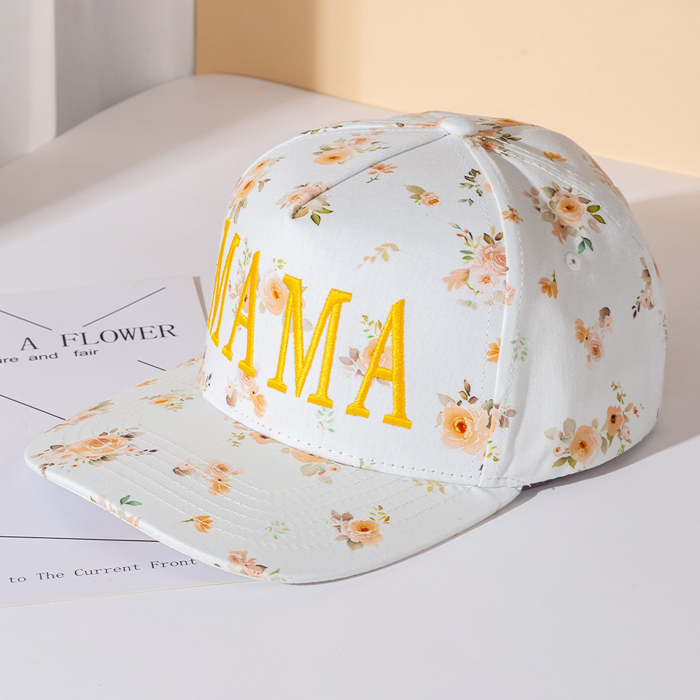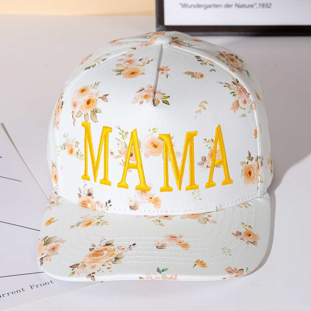MAMA Floral Embroidered Five Panel Canvas Snapback Baseball Cap