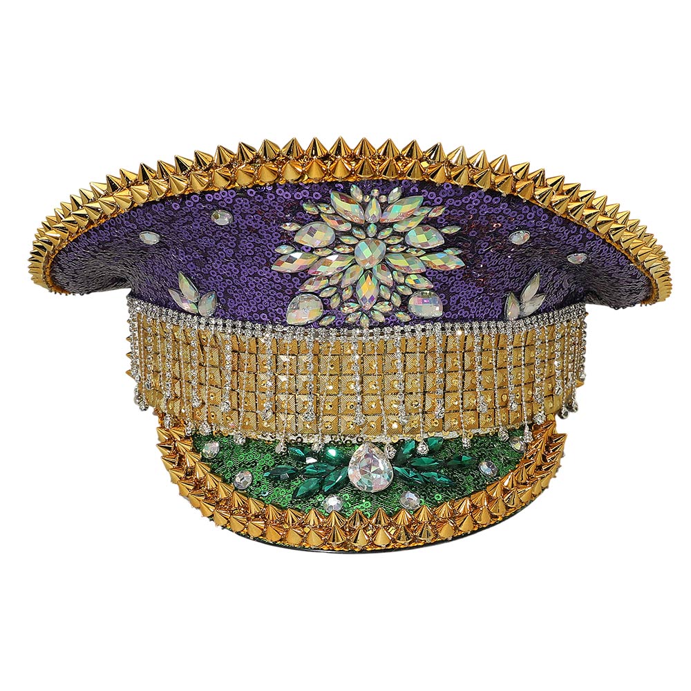 Mardi Gras Marquise Stone Cluster Embellished Rhinestone Sequin Captain Hat