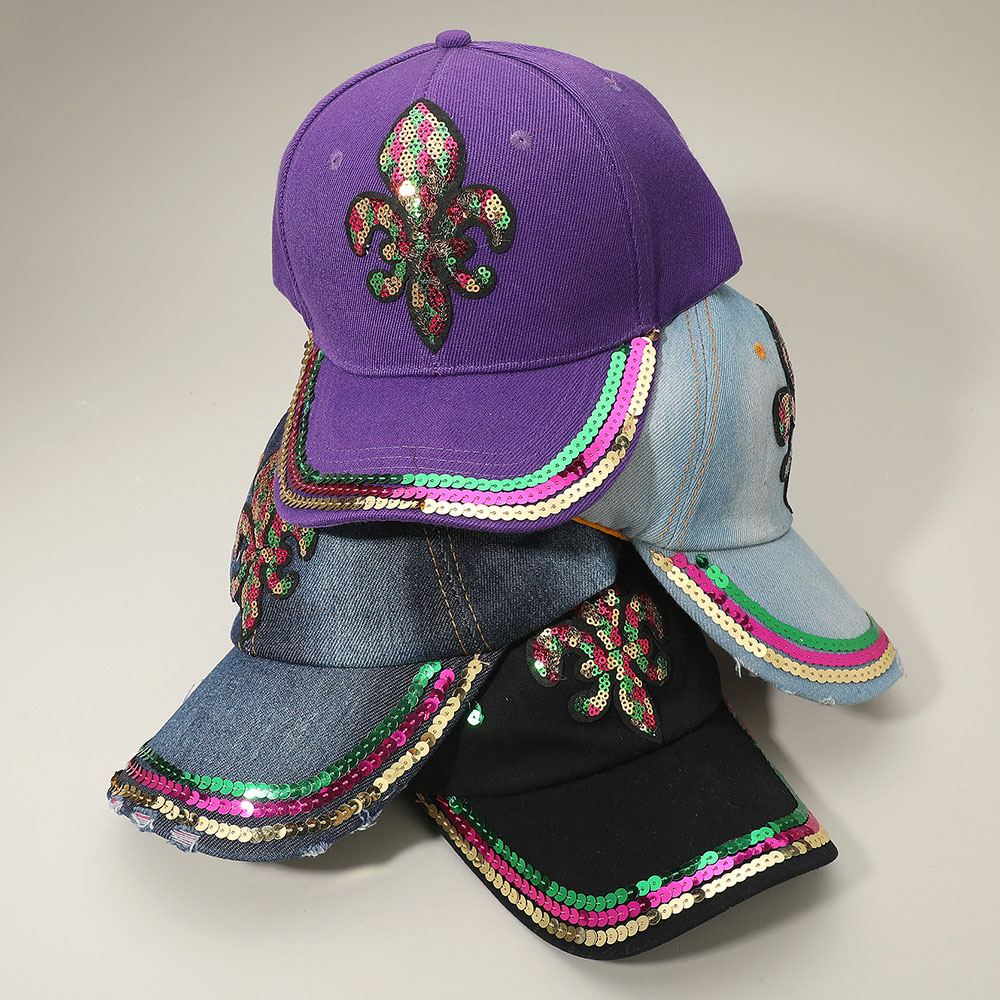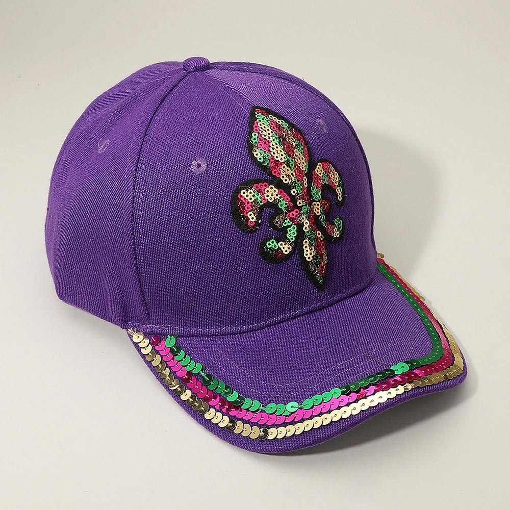 Sequin Mardi Gras Fleur de Lis Patch Baseball Cap