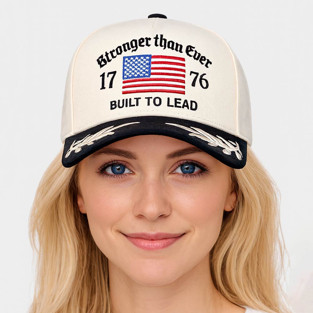 Stronger Than Ever 1776 American USA Flag Leaf Embroidered Baseball Cap