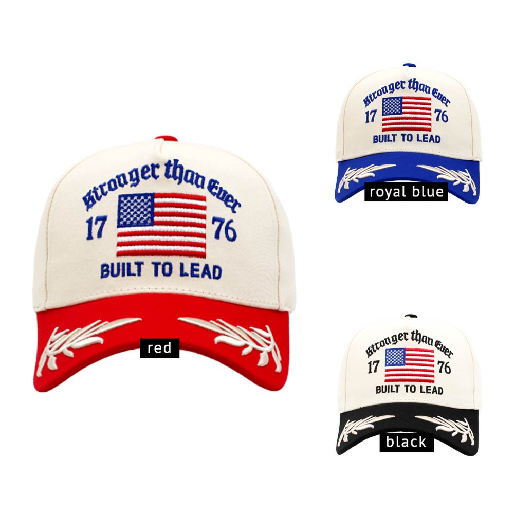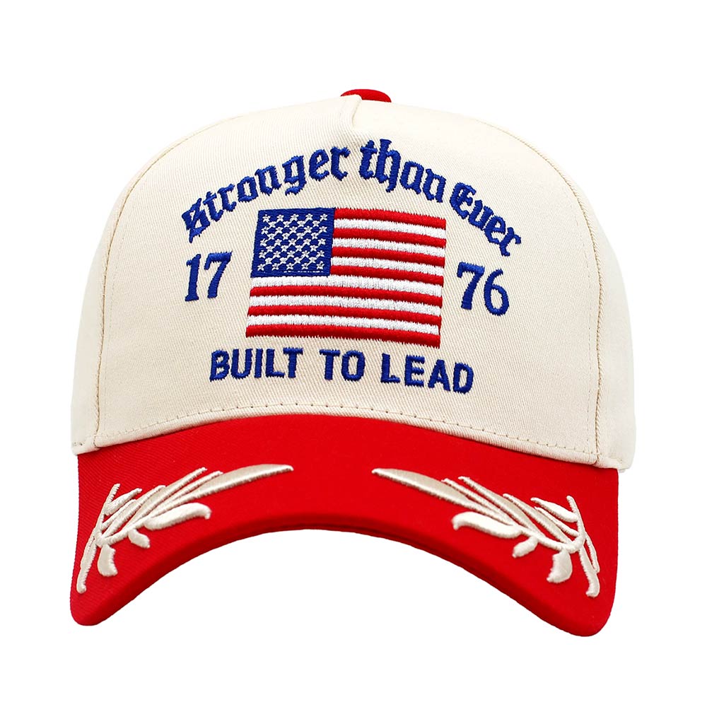 Stronger Than Ever 1776 American USA Flag Leaf Embroidered Baseball Cap