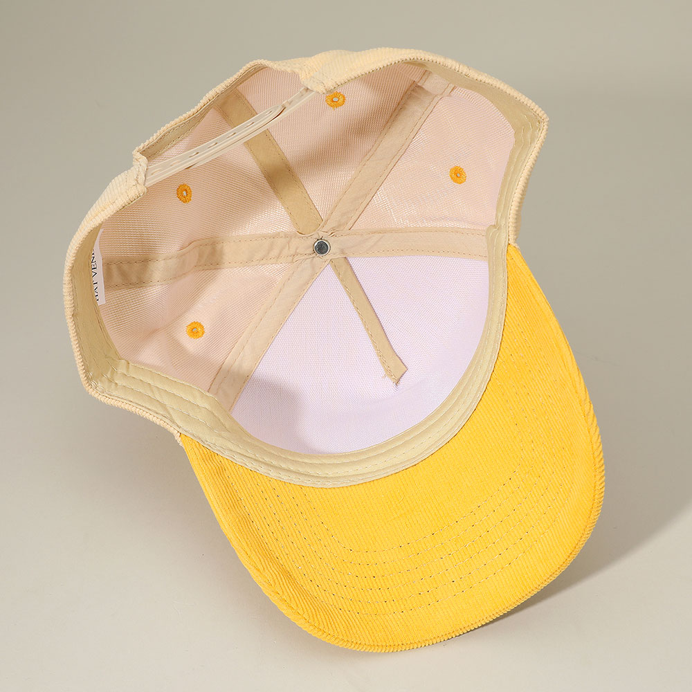 Details • Crown Circumference : 23" (Adjustable) • Crown Height : 4.5" • Brim Height : 2.75" • Elevate your casual style with this timeless two-tone corduroy baseball cap featuring a structured front panel and adjustable fit for all-day comfort. Perfect for outdoor activities or everyday wear, this cap adds a touch of classic texture and laid-back sophistication to any outfit.