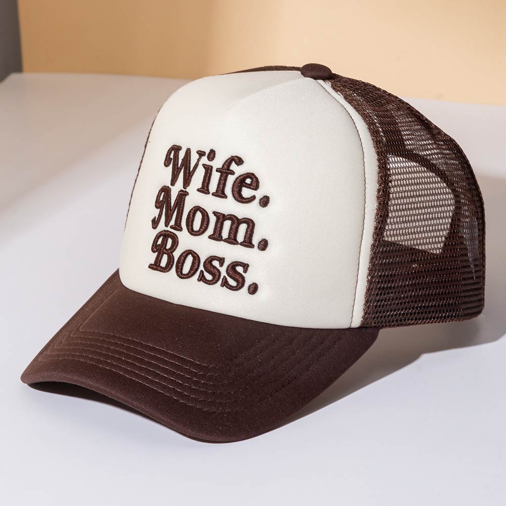 WIFE MOM BOSS Message Embroidered Trucker Hat