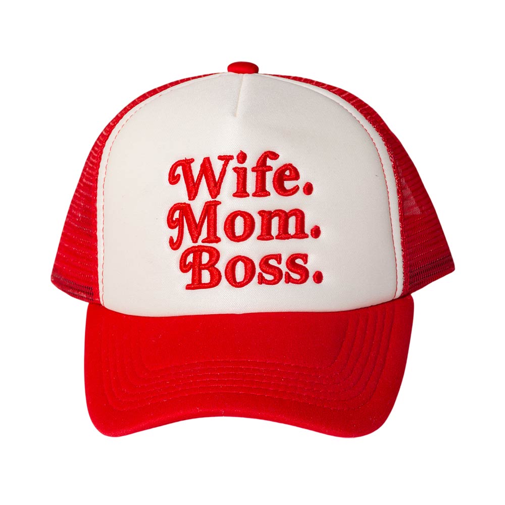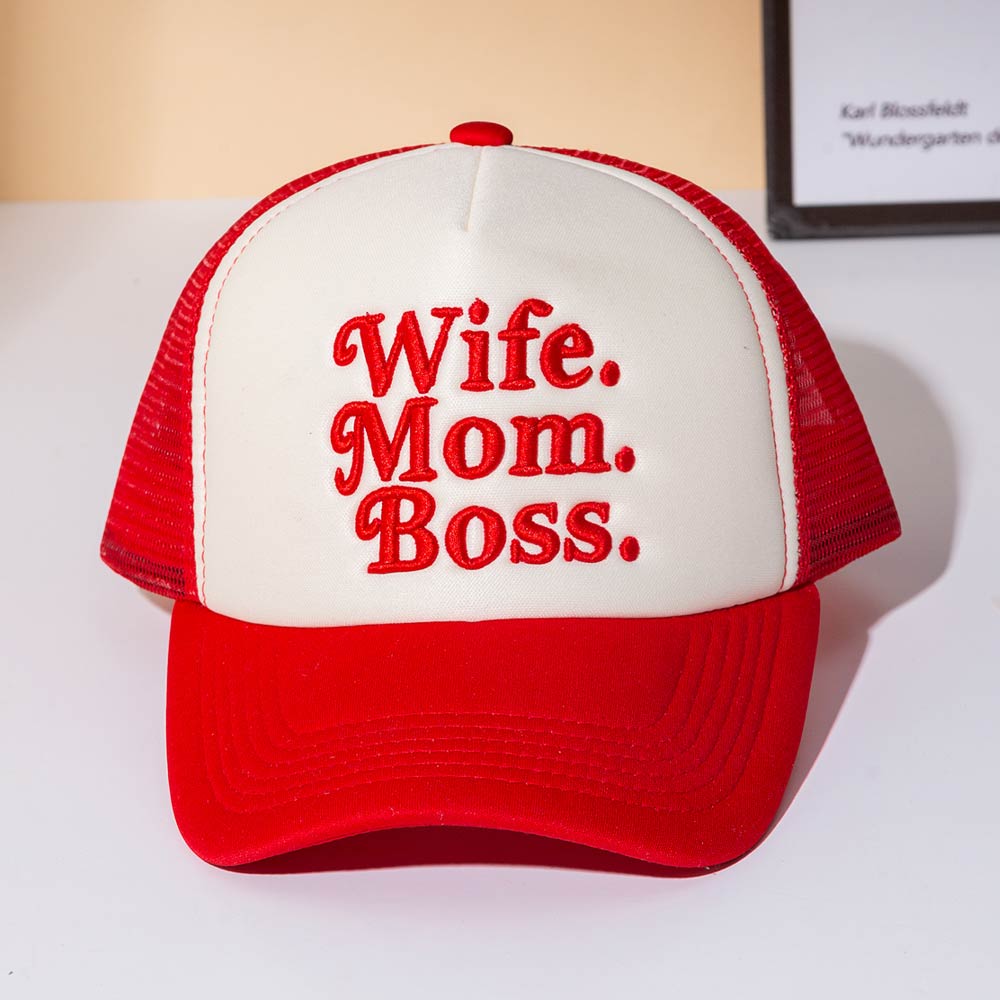 WIFE MOM BOSS Message Embroidered Trucker Hat