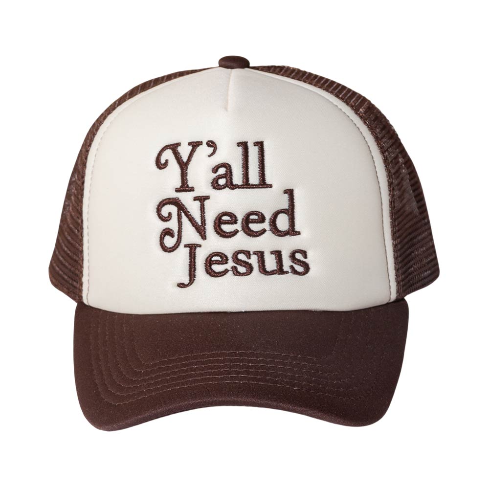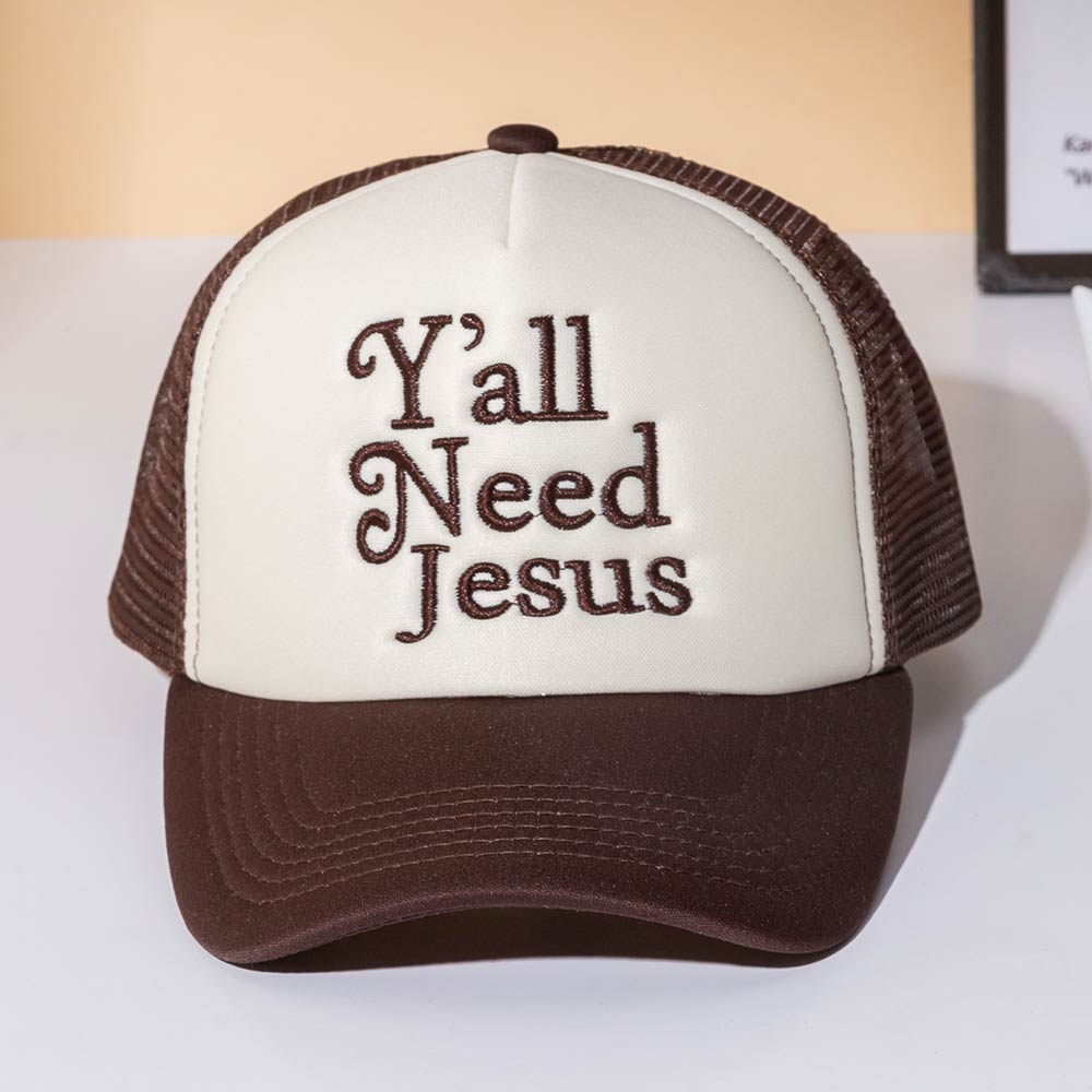 YALL NEED JESUS Message Embroidered Mesh Back Trucker Hat