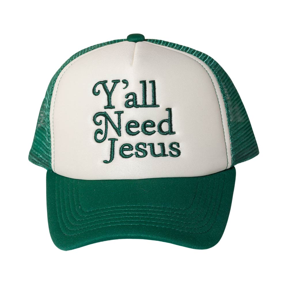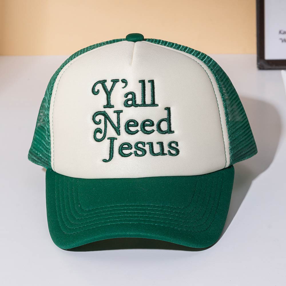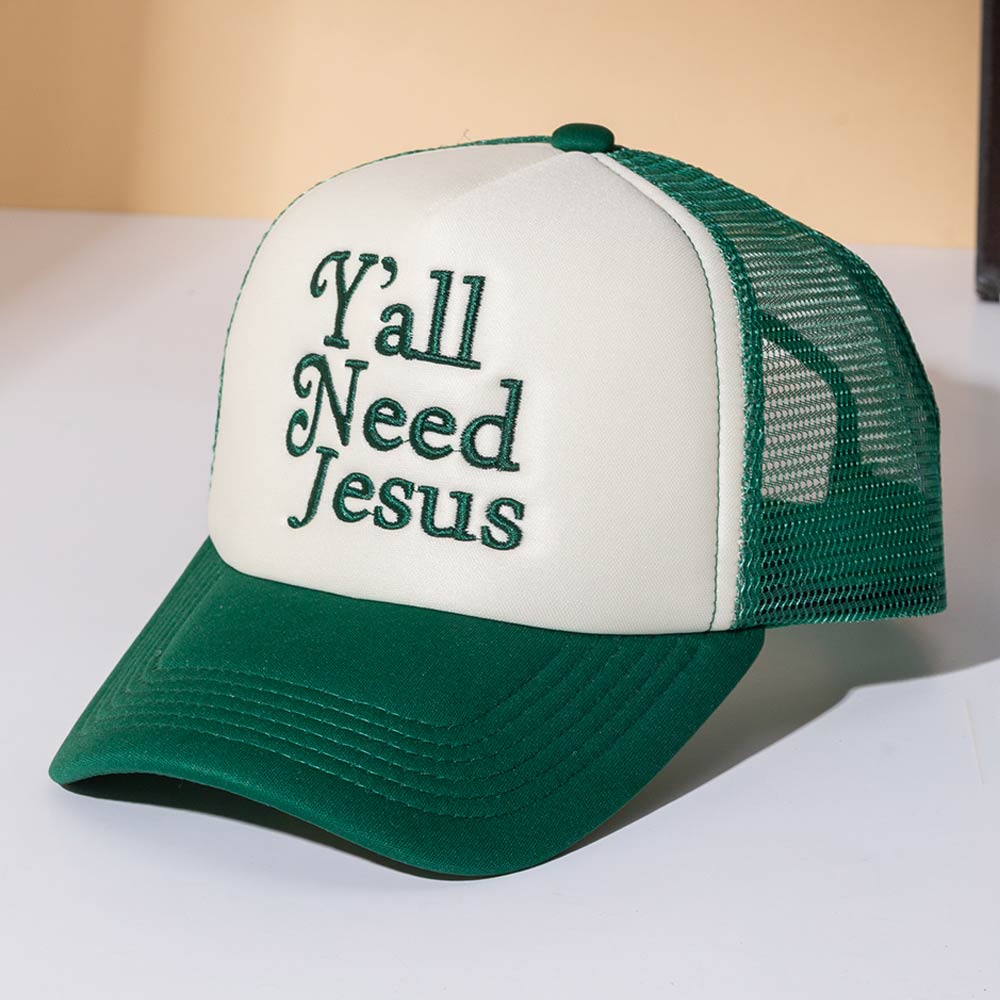 YALL NEED JESUS Message Embroidered Mesh Back Trucker Hat