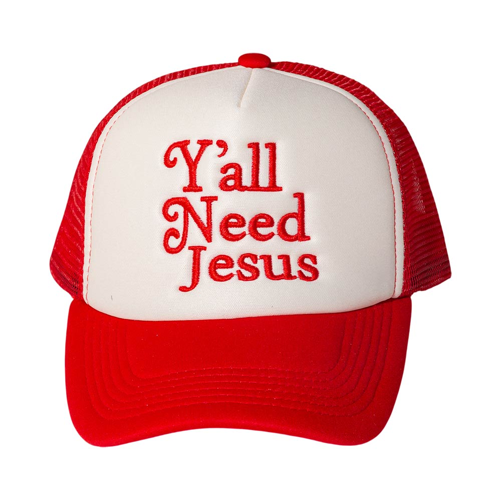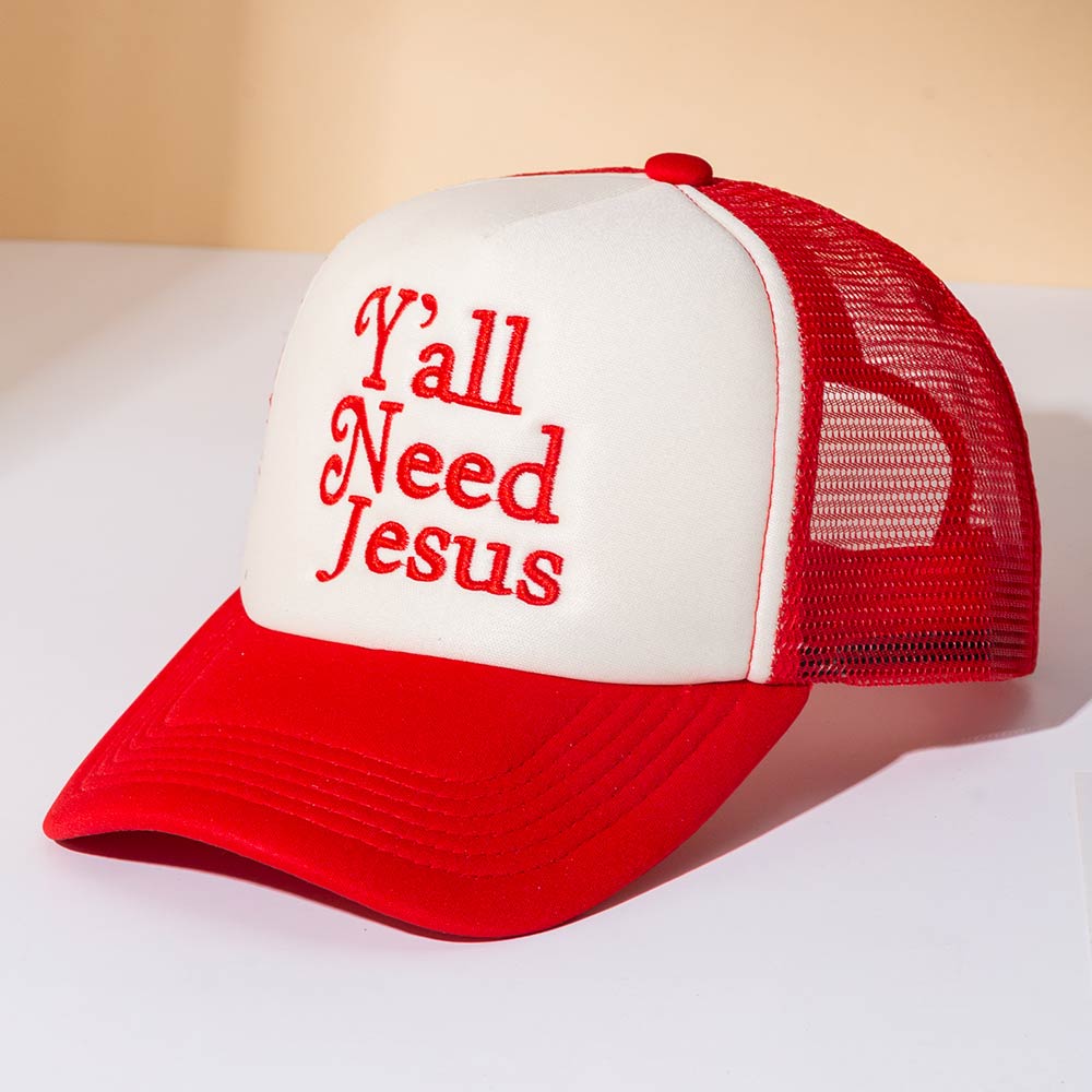 YALL NEED JESUS Message Embroidered Mesh Back Trucker Hat
