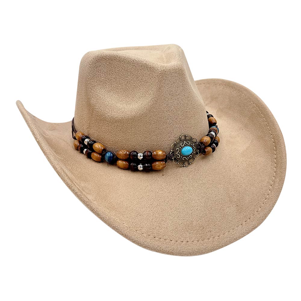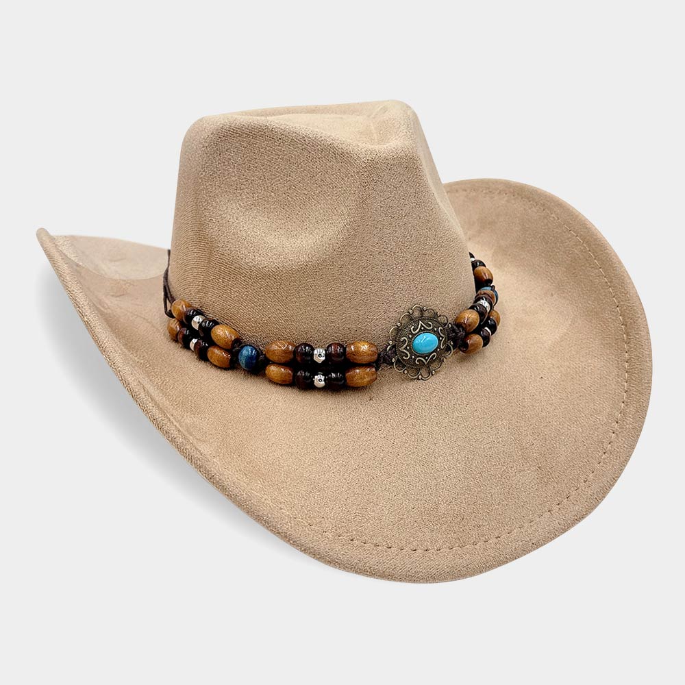 • This western-inspired cowboy hat features a classic structured silhouette accented with a decorative beaded band and centerpiece detail. Designed for statement styling, it offers a bold yet wearable look for festivals, concerts, travel, and themed events. A standout accessory for boutiques seeking eye-catching headwear with rustic character and everyday appeal.