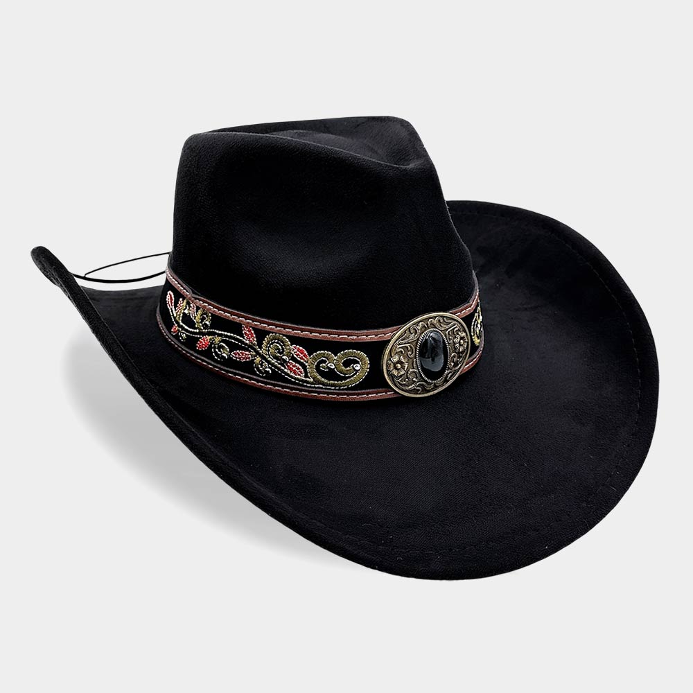 Boho Concho Buckle Embroidered Band Accent Western Cowboy Hat