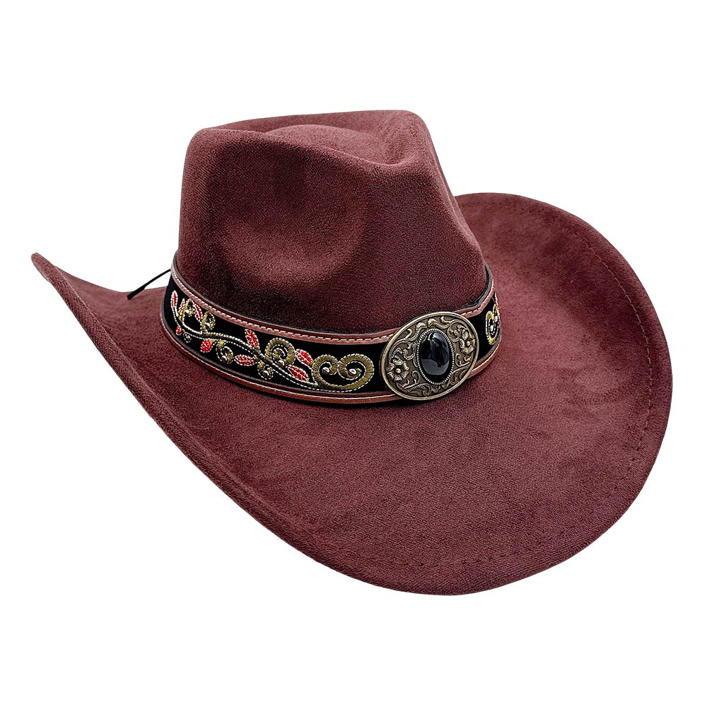 Boho Concho Buckle Embroidered Band Accent Western Cowboy Hat