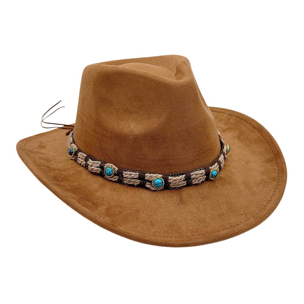 Boho Stone Accent Braided Band Western Cowboy Hat