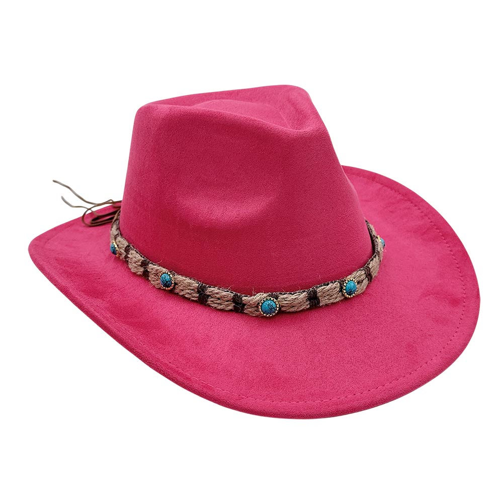 Boho Stone Accent Braided Band Western Cowboy Hat