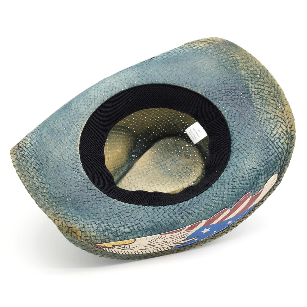 Brass Eagle USA Buckle Faux Leather Band American Flag Accent Distressed Western Cowboy Hat