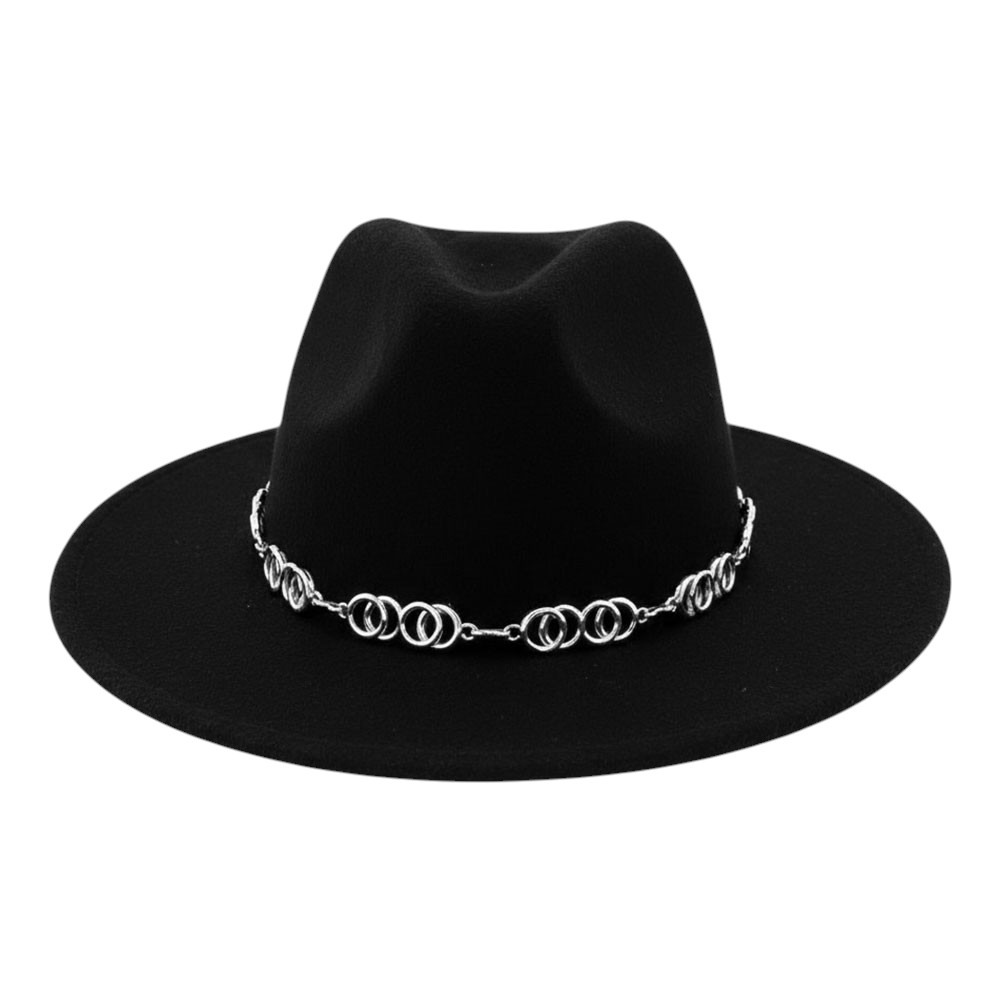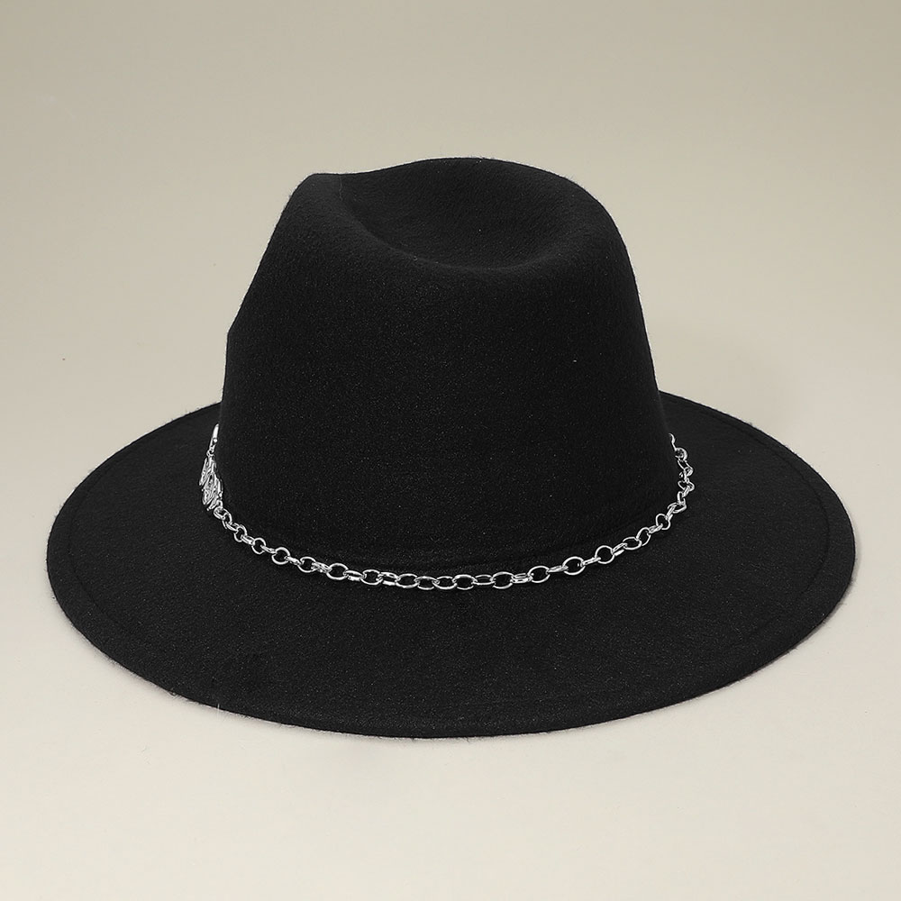 Decorative Chain Accent Elegant Wide-Brim Western Fedora Hat