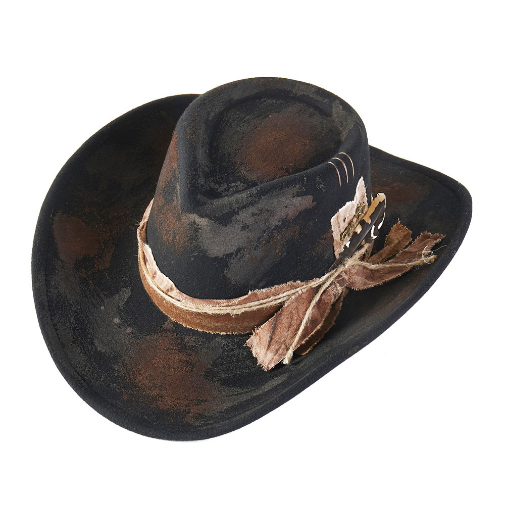 Details • Crown Circumference : 23" • Crown Height : 4.5" • Brim Height : 3.75" • Material : 100% Polyester • Elevate your look with the Vintage Distressed Western Hat, crafted for a bold and rugged statement. Its weathered design and feather detail bring authentic charm to any outfit. Perfect for festivals, casual outings, or themed events, offering comfort and standout western flair.