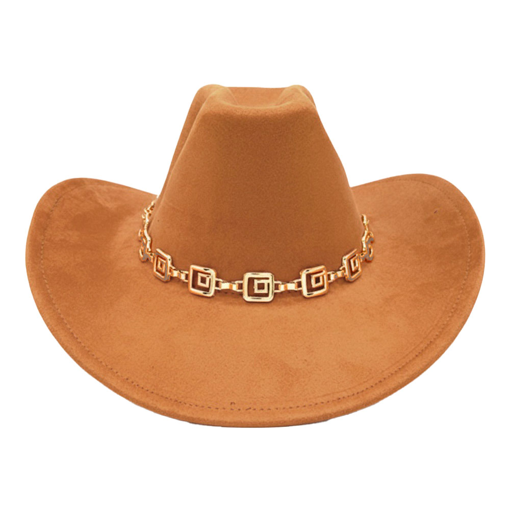 Geometric Metal Chain Accent Western Cowboy Fedora Hat