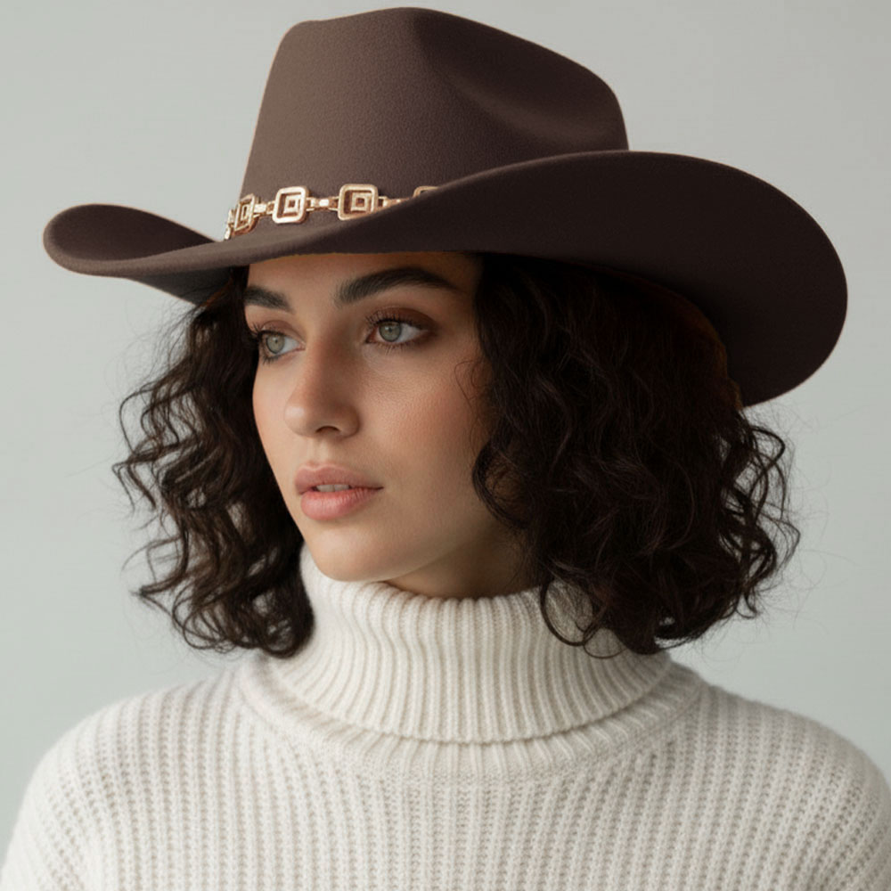 Geometric Metal Chain Accent Western Cowboy Fedora Hat