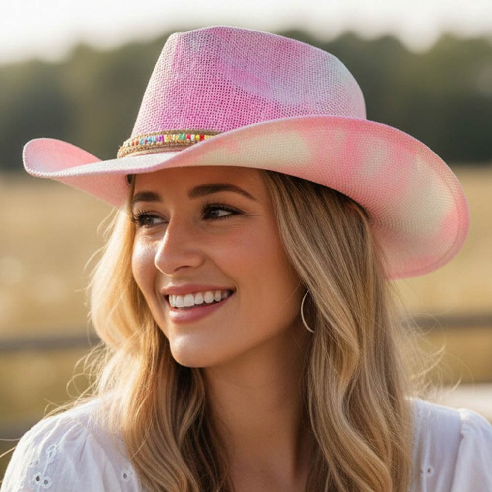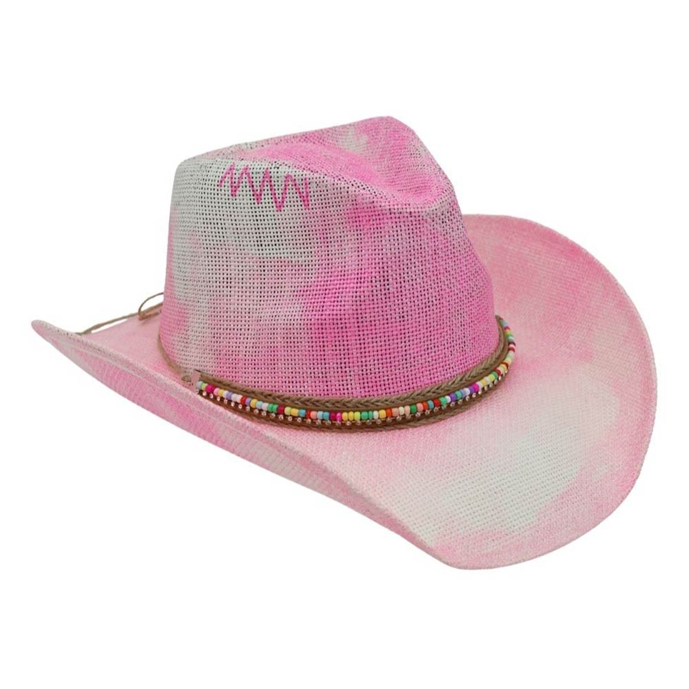 • Statement western cowboy hat designed with a structured crown and curved brim, accented by a decorative beaded band for a bold, eye-catching finish. Ideal for festivals, concerts, travel, and everyday styling, this versatile hat adds personality, comfort, and western flair to any outfit.