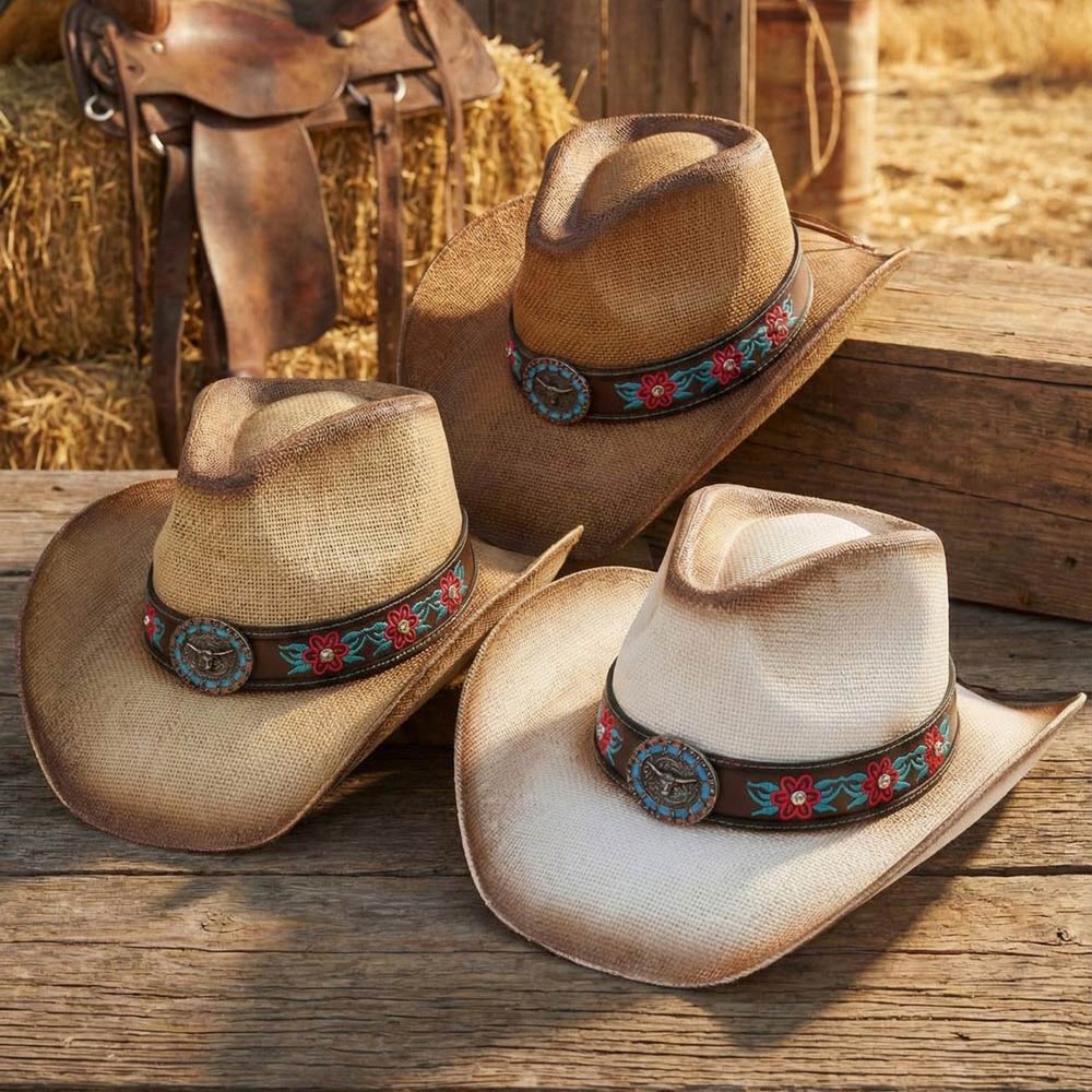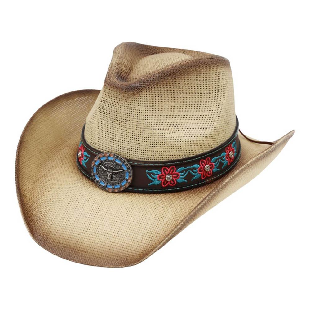 Steer Head Oval Concho Accent Floral Embroidered Band Western Straw Cowboy Hat Steer Head Oval Concho Accent Floral Embroidered Band Western Straw Cowboy Hat Steer Head Oval Concho Accent Floral Embroidered Band Western Straw Cowboy Hat