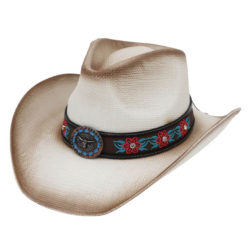 Steer Head Oval Concho Accent Floral Embroidered Band Western Straw Cowboy Hat Steer Head Oval Concho Accent Floral Embroidered Band Western Straw Cowboy Hat Steer Head Oval Concho Accent Floral Embroidered Band Western Straw Cowboy Hat