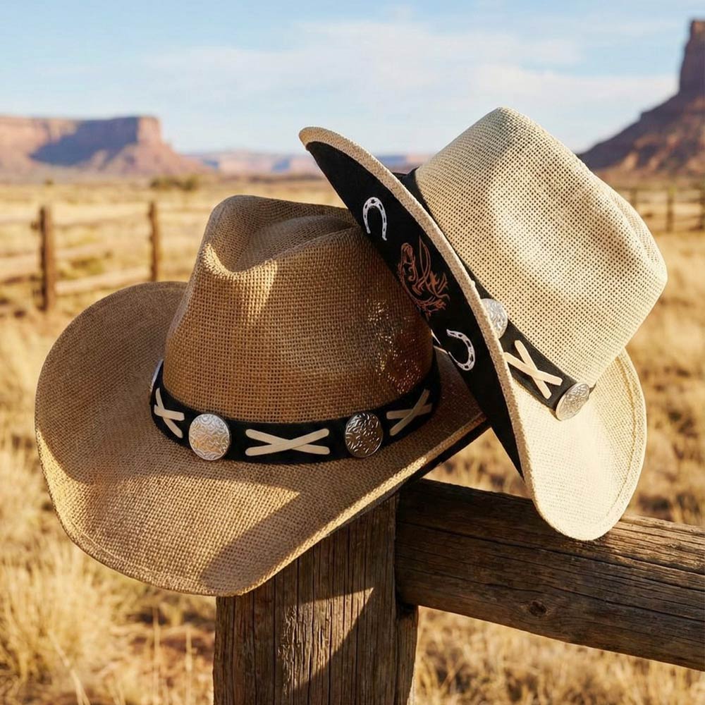 Details • Size : One Size • Material : 100% Paper • Classic western-inspired cowboy hat designed with a bold concho band accent that adds character and timeless appeal. Perfect for western boutiques, festivals, rodeos, and everyday styling, this statement hat delivers standout charm, versatility, and trend-driven flair for any accessory assortment.