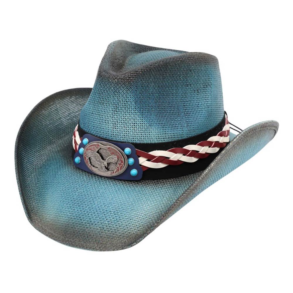 Vintage Eagle Concho Accent Braided Band Western Straw Cowboy Hat