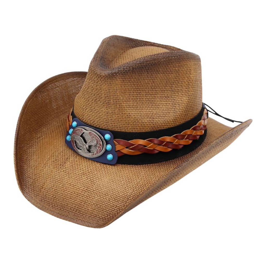 Vintage Eagle Concho Accent Braided Band Western Straw Cowboy Hat