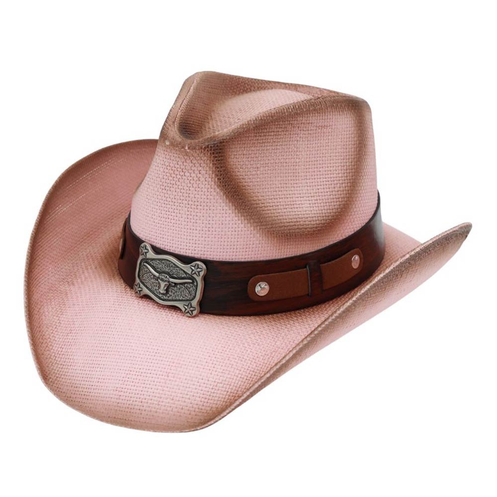 Vintage Longhorn Steer Head Buckle Accent Band Western Straw Cowboy Hat