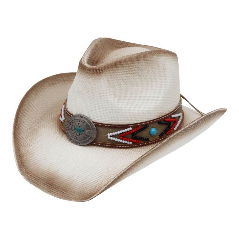 Vintage turquoise Concho Beaded Band Western Straw Cowboy Hat Vintage turquoise Concho Beaded Band Western Straw Cowboy Hat Vintage turquoise Concho Beaded Band Western Straw Cowboy Hat
