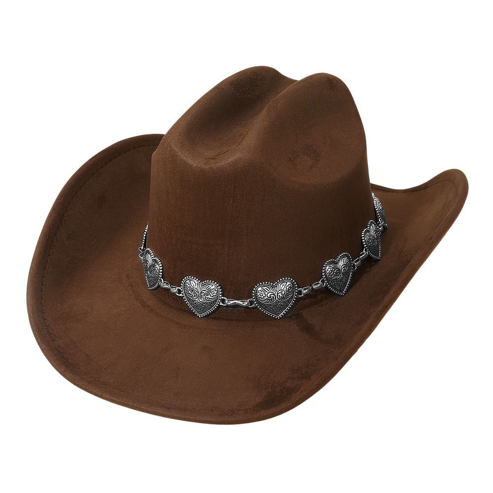 • Western-style cowboy hat accented with a heart concho chain band for a unique and stylish touch. Perfect for rodeo events, concerts, festivals, or everyday western fashion, this hat combines durability with standout charm, making it an essential accessory for bold, country-inspired looks.