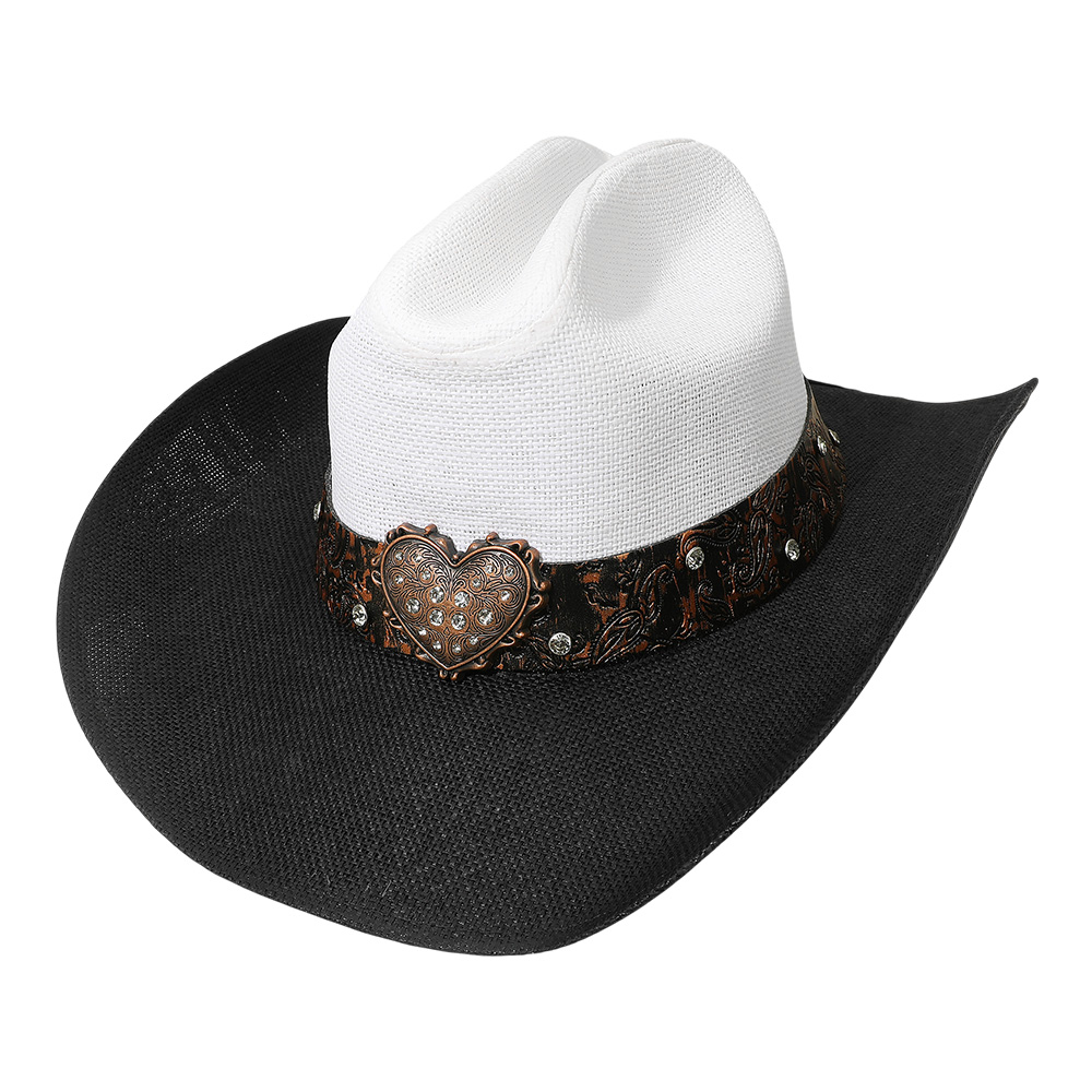 • Show off bold western charm with this cowboy hat featuring an ornate heart concho and decorated band with shimmering accents. Perfect for concerts, festivals, or everyday wear, it delivers a unique statement piece that blends tradition with modern flair.