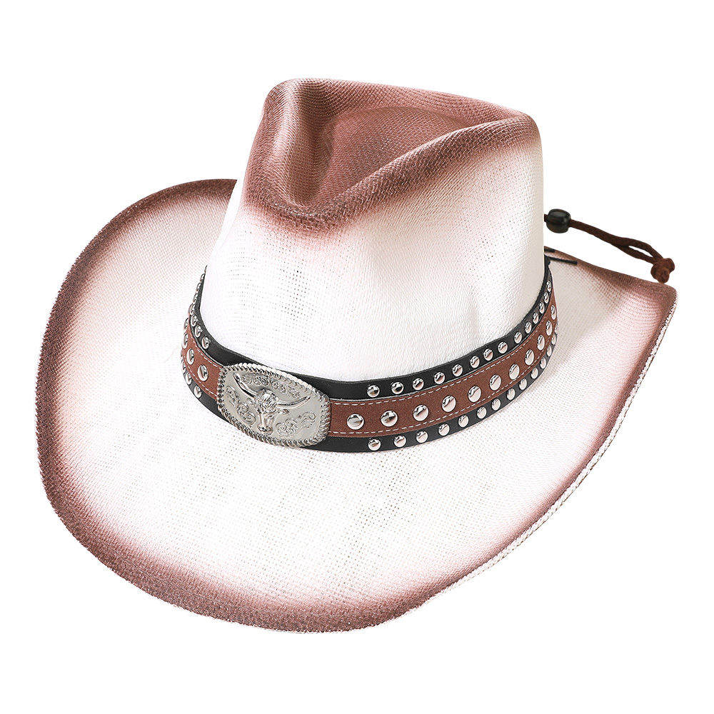 Details • Crown Circumference : 23" • Crown Height : 4.75" • Brim Height : 3.75" • Material : 98% Rayon, 2% Polyester • Command attention with this cowboy hat featuring a studded band and bold steer head concho centerpiece. Perfect for rodeos, concerts, or casual wear, it captures rugged western spirit with striking detail, making it a must-have accessory for adventurous style.