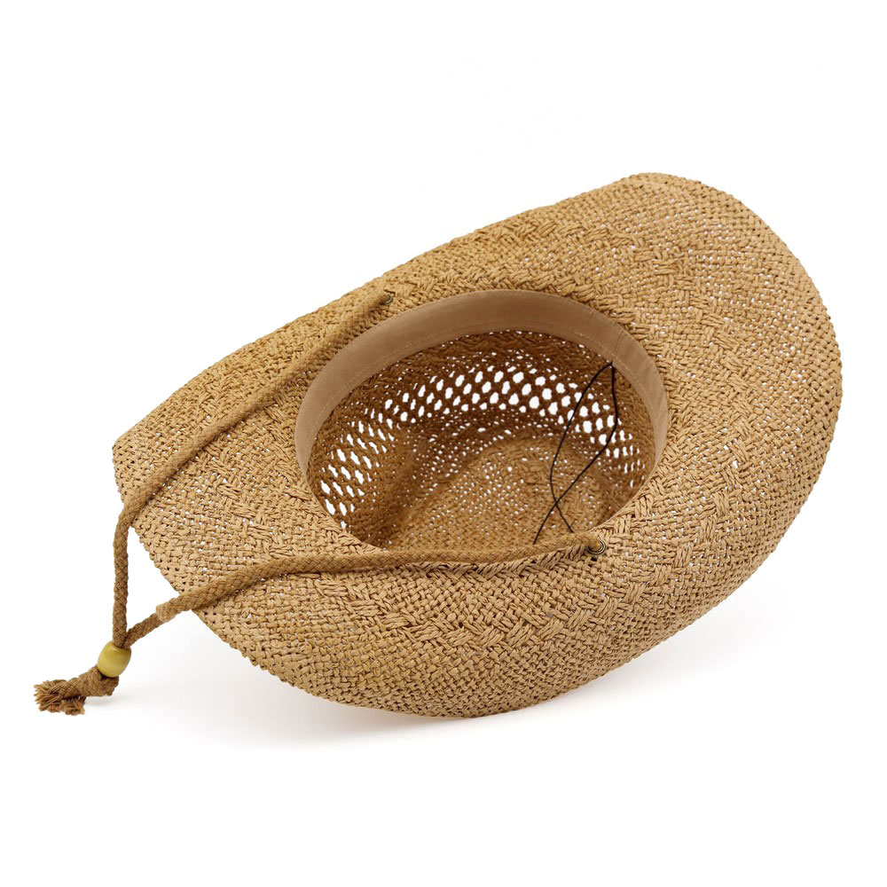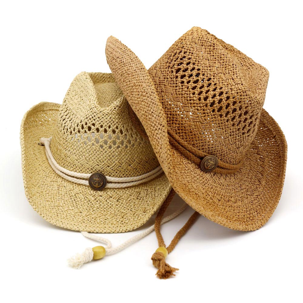 Antique Anchor Button Adjustable Chin Strap Summer Western Straw Cowboy Hat