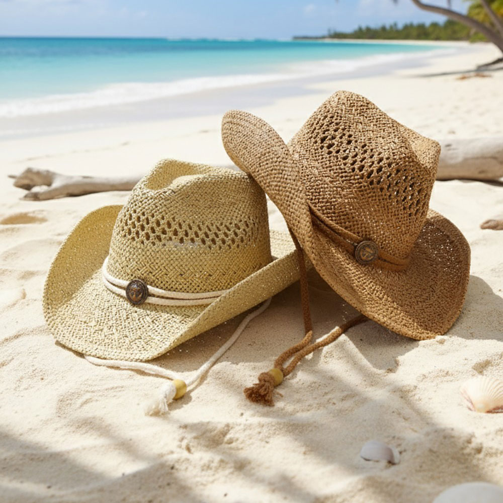 Details • Size : One Size • Material : 100% Paper • This western-style cowboy hat features a ventilated woven crown, curved brim, and adjustable chin strap for a secure fit. Designed for outdoor wear, festivals, and travel, it delivers a classic silhouette with breathable comfort. A strong statement accessory that pairs easily with casual and western-inspired outfits, ideal for seasonal boutique assortments.