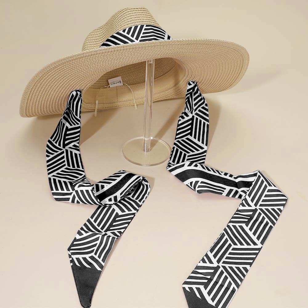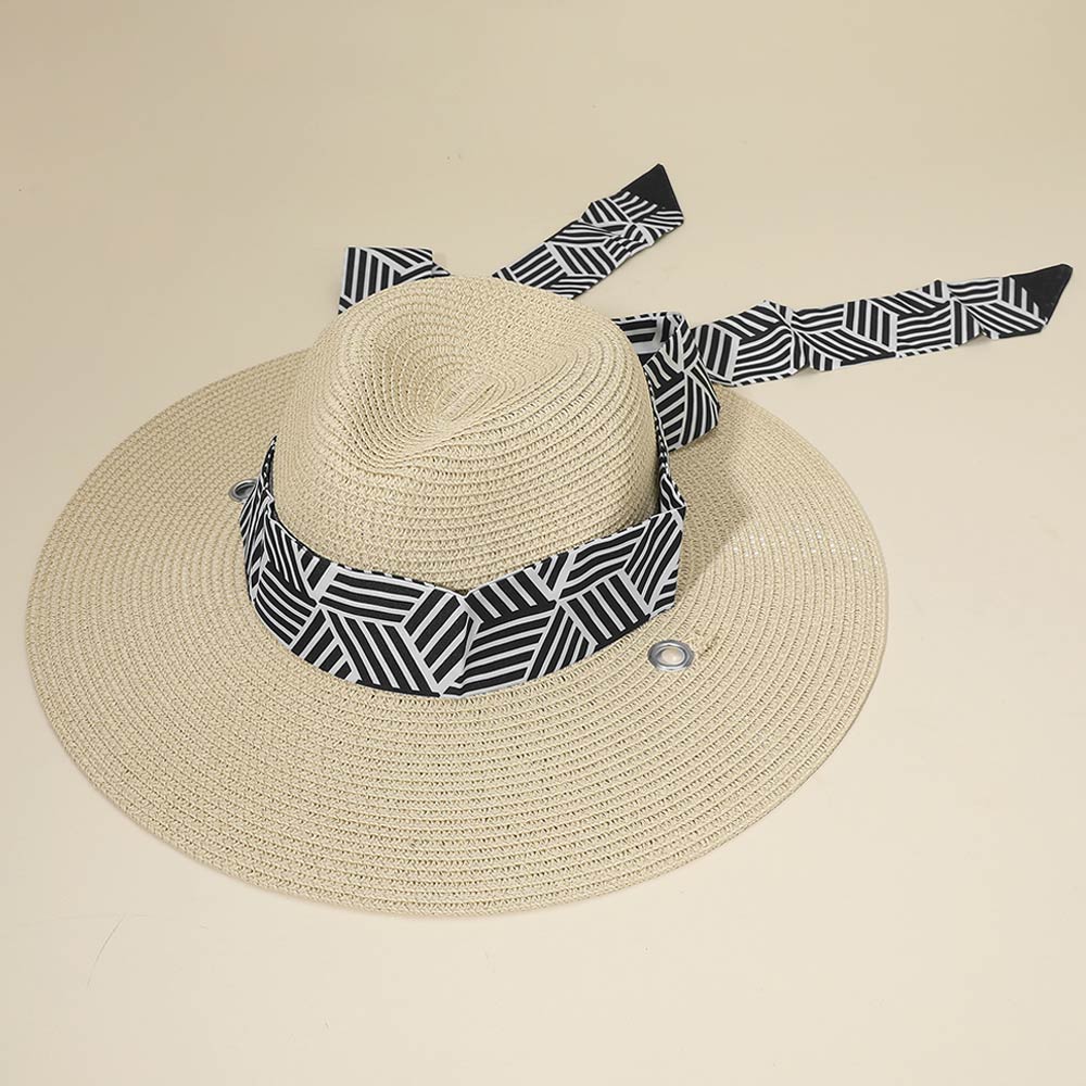 Details • Crown Circumference : 23" • Crown Height : 4.25" • Brim Height : 4.75" • Strap Size : 60" L / Detachable • Material : 100% Paper • Stylish fedora hat featuring a structured wide brim and an integrated geometric band scarf detail for a modern, fashion-forward look. Designed to elevate casual and dressy outfits alike, this versatile accessory offers effortless styling for travel, outdoor events, and everyday wear while adding a polished finishing touch.