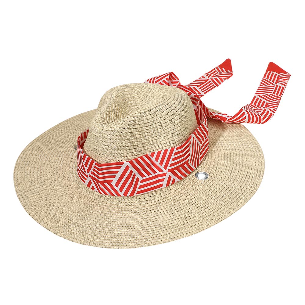 Geometric Pattern Scarf Band Woven Fedora Sun Hat