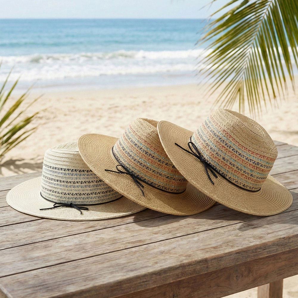 • This wide brim woven sun hat features a structured crown with a decorative patterned band that adds visual interest without overpowering the design. Its balanced shape makes it ideal for everyday styling, travel, and resort wear. A versatile accessory that pairs easily with casual and seasonal outfits, offering strong retail appeal for boutiques seeking timeless yet eye-catching headwear.