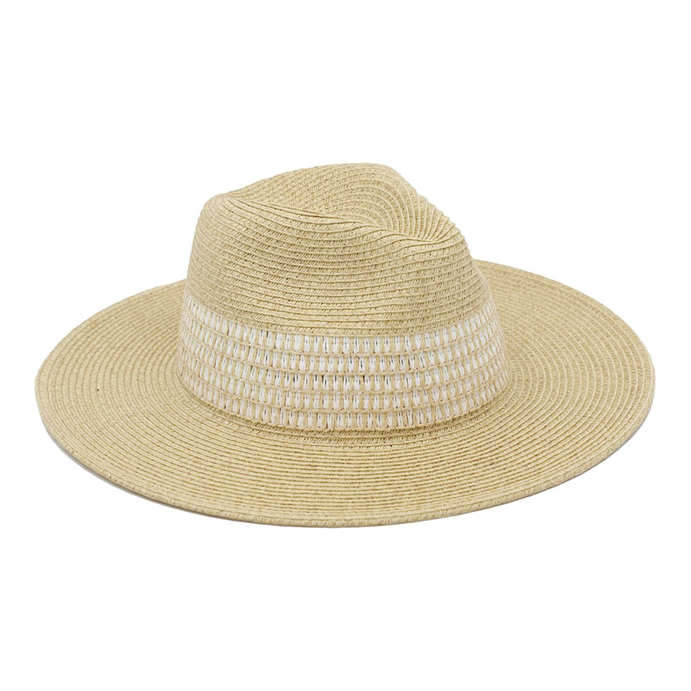 Striped Color Woven Wide Band Summer Fedora Hat