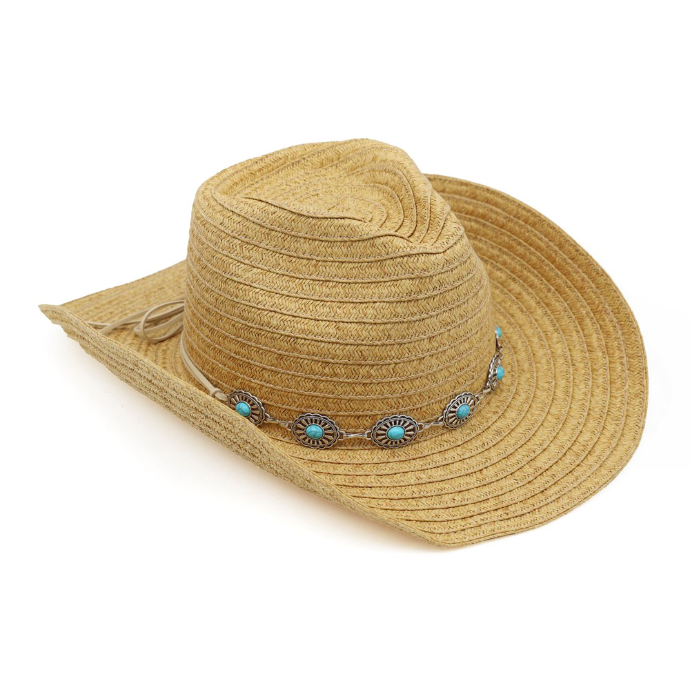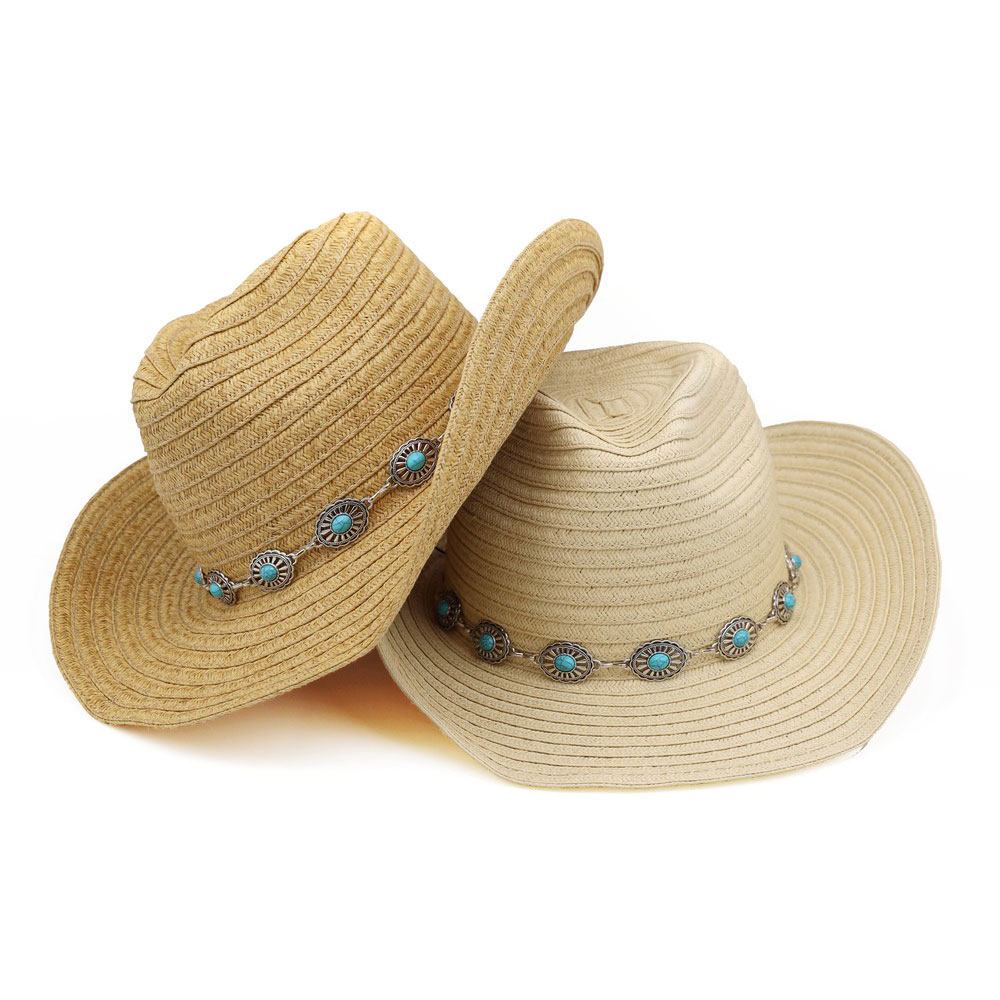 Turquoise Concho Band Summer Straw Cowboy Hat
