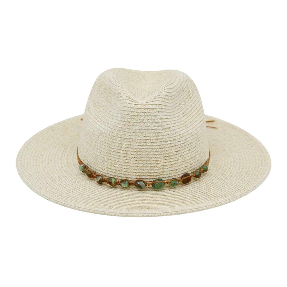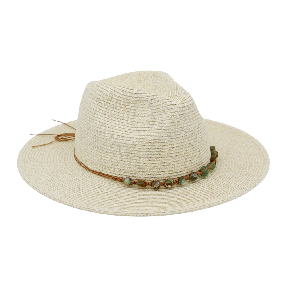 Details • Size : One Size • Material : 80% Paper, 20% Polyester • This wide brim fedora sun hat features a structured crown accented with a decorative beaded band for added texture and style. Designed for everyday wear, travel, and resort looks, it pairs effortlessly with casual and elevated outfits. A versatile statement accessory that brings a polished finish to seasonal collections and boutique assortments while offering strong visual appeal for merchandising.