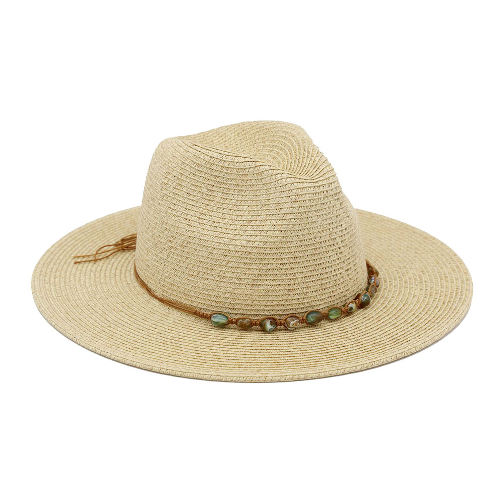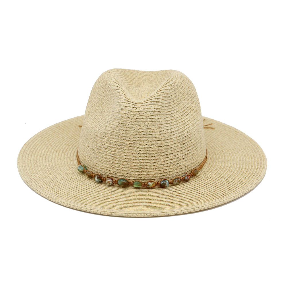 Details • Size : One Size • Material : 80% Paper, 20% Polyester • This wide brim fedora sun hat features a structured crown accented with a decorative beaded band for added texture and style. Designed for everyday wear, travel, and resort looks, it pairs effortlessly with casual and elevated outfits. A versatile statement accessory that brings a polished finish to seasonal collections and boutique assortments while offering strong visual appeal for merchandising.