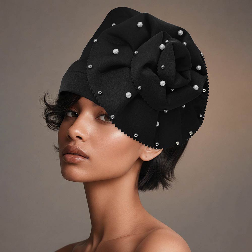 • Embellished statement turban headwrap designed to elevate formal and fashion-forward looks. This sculpted headwrap features decorative accents for a polished, high-impact finish, ideal for special events, evening wear, photoshoots, and boutique accessories collections. Lightweight, comfortable, and eye-catching, it offers a refined alternative to traditional headwear while adding dramatic style appeal.