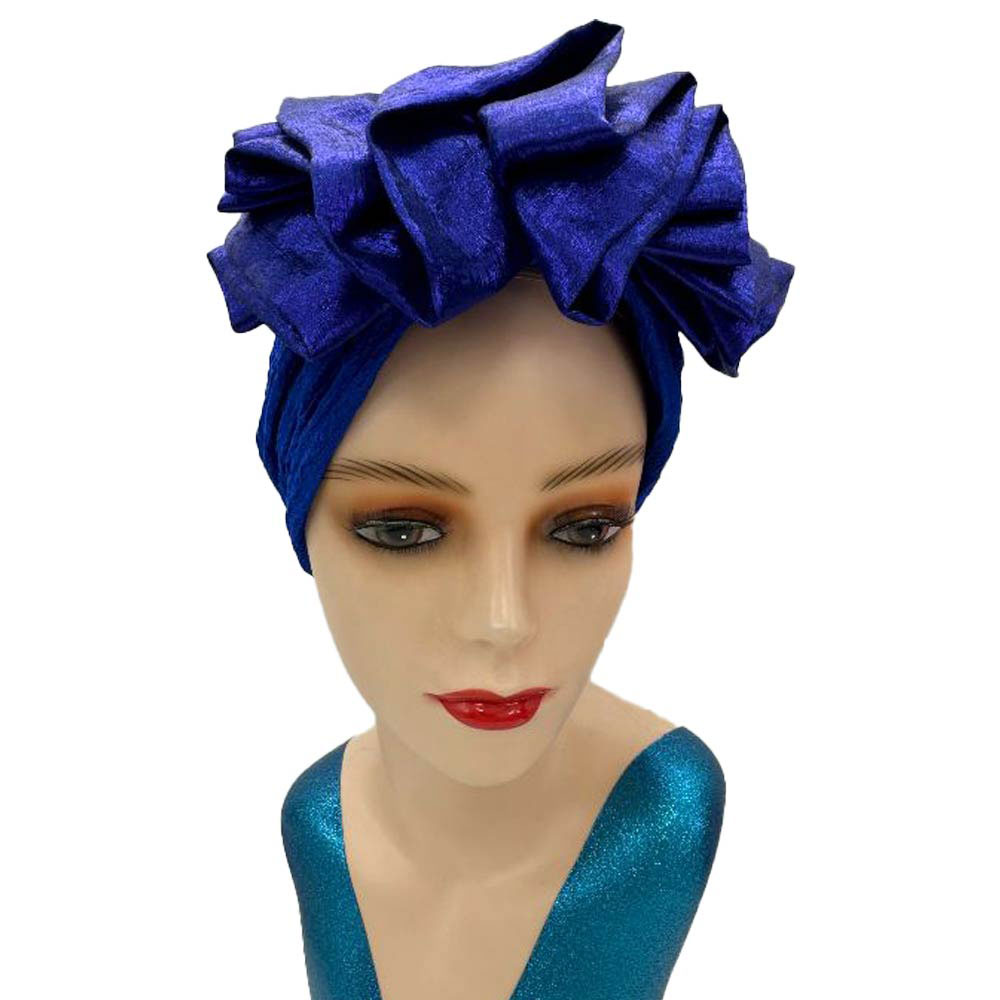 • This elegant ruffled statement headwrap adds dramatic flair and sophistication to any outfit. Designed with voluminous layered detailing, it offers a bold, sculpted silhouette perfect for special occasions, cultural events, or elevating everyday fashion with timeless grace.
