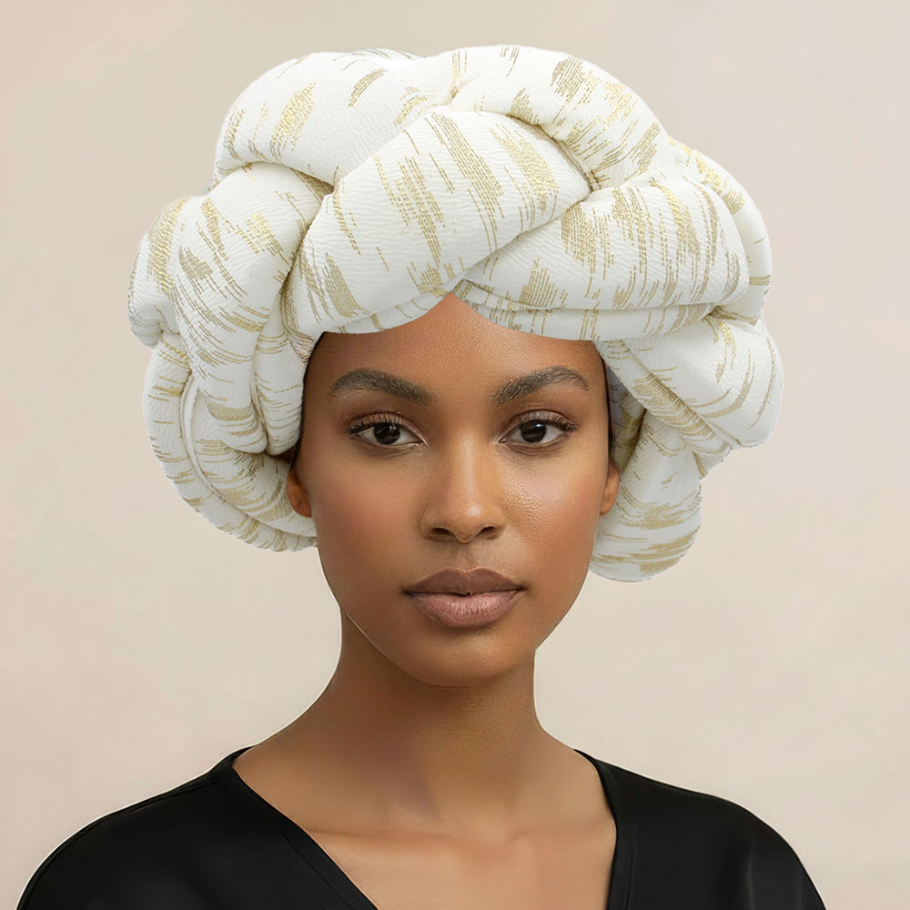 • Statement braided padded headwrap turban featuring a thick knot design and full wrap style for standout volume. Soft, comfortable fit ideal for fashion styling, cultural wear, or special events. Adds bold texture and elevated flair to any outfit.